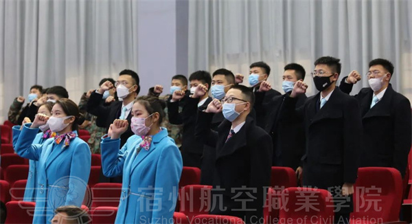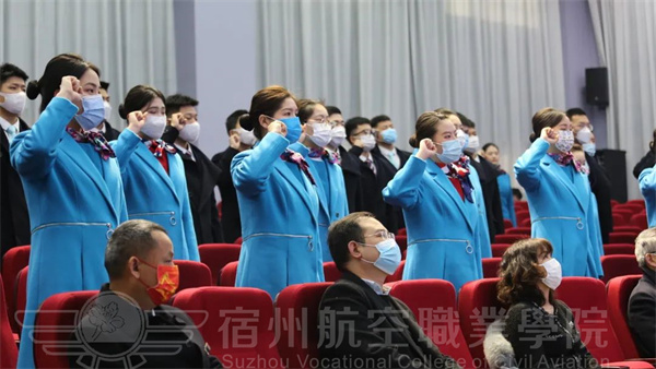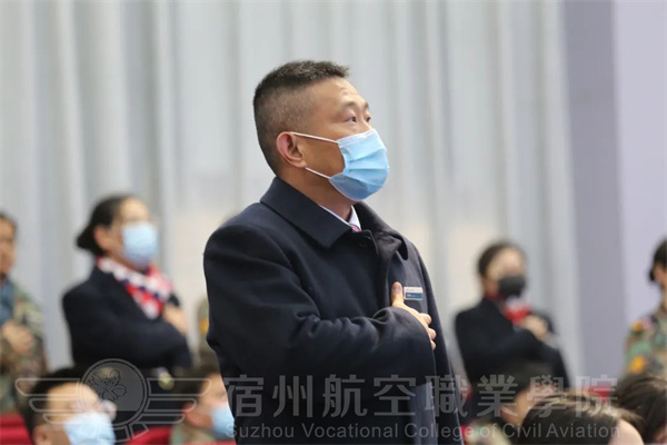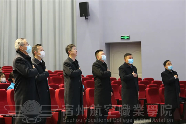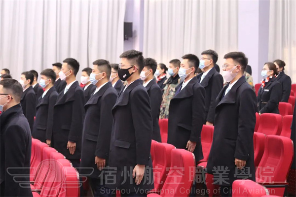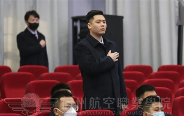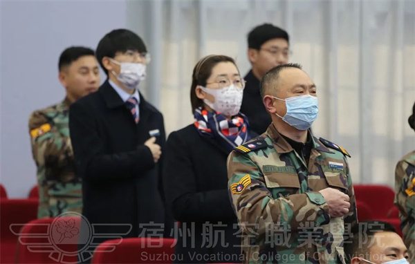 宿航院校学子全体肃立😙⏭,注视国旗高唱国歌。