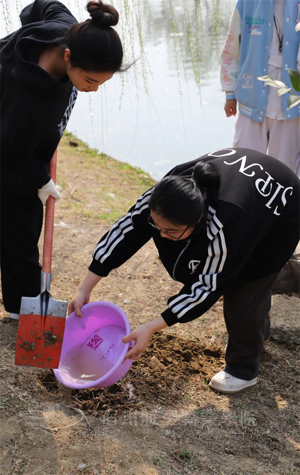 活动现场处处体现着贴心,老师们为初次植树的同学们答疑解惑。同学们学到了正确的植树方法🚘,确保了小树苗的存活率👨🏿🌾。