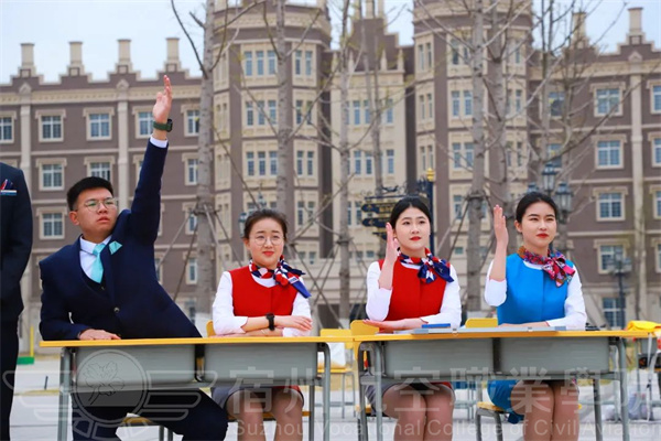 在现场,主持人提问关于民航知识的专业问题,同学们踊跃抢答。业务知识比拼作为高度职业化民航员工的专业技能,展现学子扎实的专业素质。