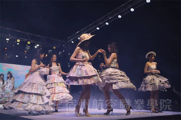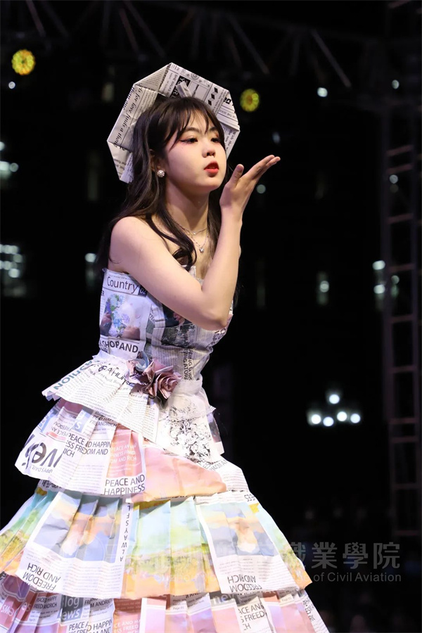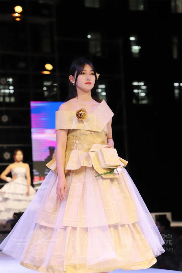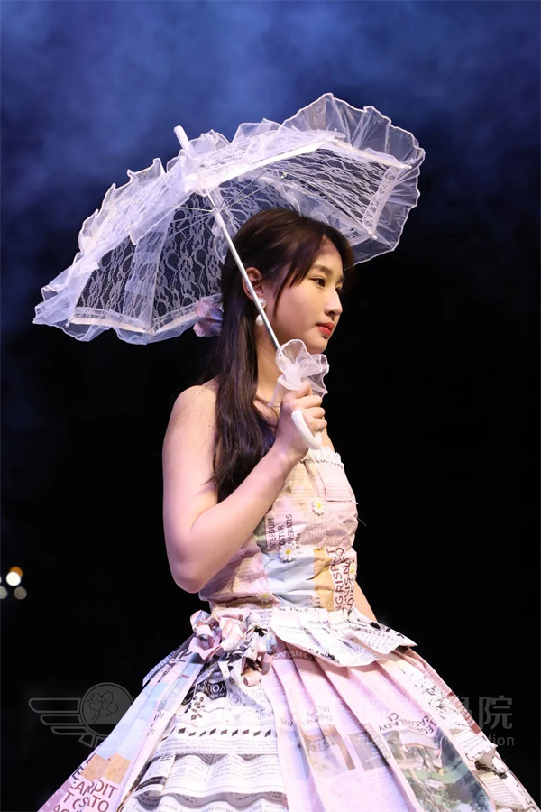 每一套服装和配饰都是同学们纯手工精心设计制作🧁,他们以报纸为主要元素🎶,布料为辅助元素,运用不同的折叠法🫂、粘贴法、裁剪法等,搭配不同色调的英文报纸设计制作而成。他们打破常规设计,突破传统理念,用手创演绎出现代青年英伦服饰的文艺时尚🤽♀️、高雅品味!