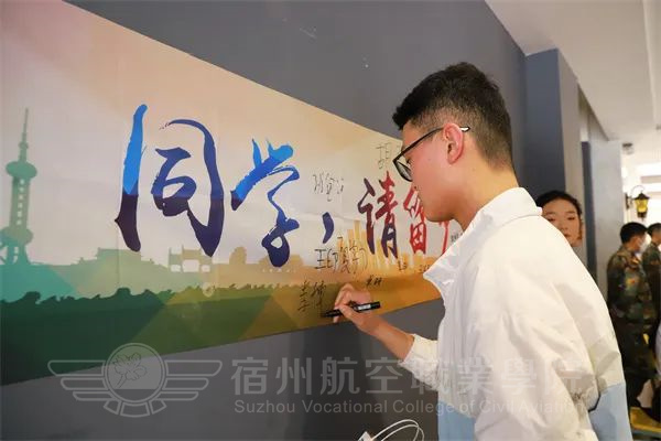 自踏梦幻门的那一刻起,同学们的蓝天梦就已在这里启航🩸。TA们纷纷在开学签名墙上留言签字🟣,纪念这个意义非凡且令人难忘的“研学第一天”。