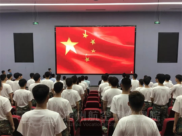 在开营仪式开始前,全体起立,奏唱国歌🏺。随着高亢激昂的国歌声,全体师生面向国旗🤾🏼,集体行注目礼。