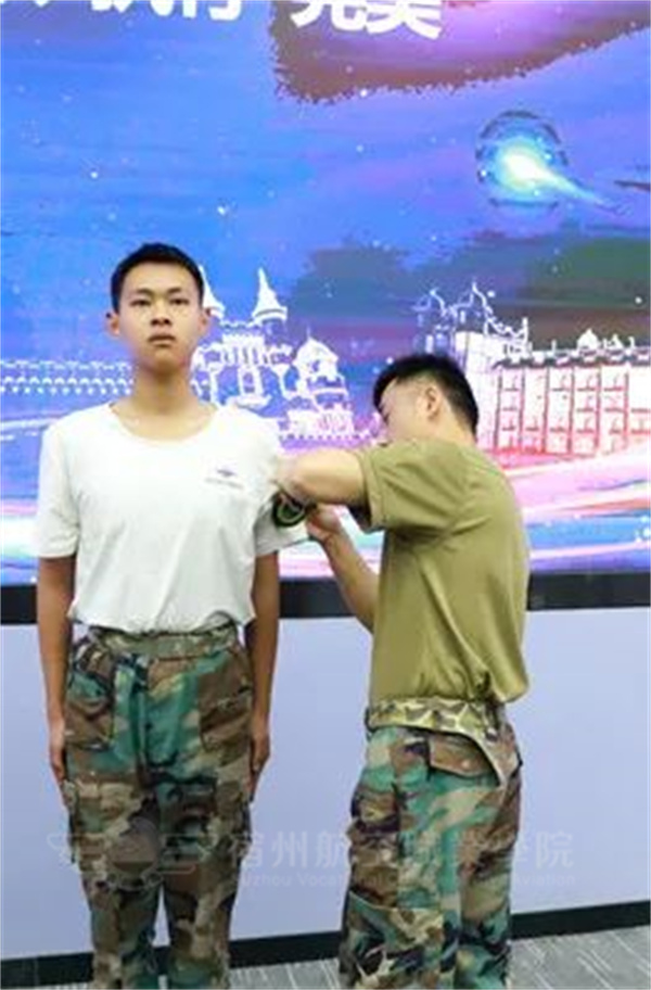 宿航院军体教官关振东任命王旭🏏、孙密密🔋👩🏿⚖️、赵家福3名同学担任此次活动实习教官并授予臂章🌒。