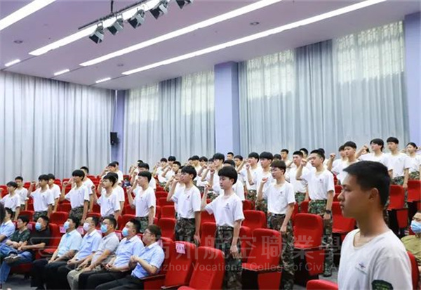 皖北电子信息工程学校学生代表张成伟发言:“让我们吹起前进的号角👨🏼💼,击响出征的战鼓🏌🏼♂️,以充沛的精力去迎接新的征程🤷🏽♀️!在这里我谨代表研学营全体参训学员郑重承诺,在这次训练中,我们尊敬每一位老师及教官,严格遵守训练纪律,一切行动听从指挥;虚心学习👨🔧,刻苦训练,磨练意志🙆🏻♀️,强健体魄;团结互助,同舟共济🧑⚖️,相互激励🧔🏿,共迎困难➖;认真学习理论,明确动作要领,不迟到🚵🏼♂️、不早退、不旷课🌈,搞好寝室内务卫生;发扬‘流血流汗不流泪,掉皮掉肉不掉队’的精神,争做一名优秀的参训学员🗜,争当训练积极分子➗。”