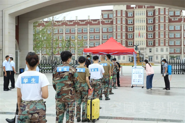 体温正常的学生按照指定线路进行报到,若体温异常的学生将由工作人员着防护服校门外体温观测点作进一步确认和筛查。