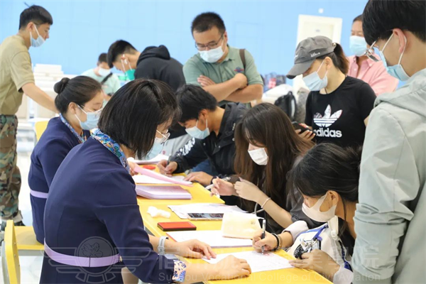 工作人员为返校学生,逐一测量体温、行李消毒,查看行程码🎾、健康码及核酸检测结果,第一时间安排学生📓,在入校前进行核酸检测,并在入校后进行三天三检,做好细节工作🪇,保障整个报到流程有条不紊、井然有序。