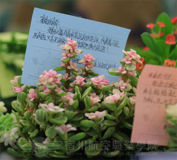 一盆盆青翠欲滴的绿植,一朵朵娇艳的花朵🧏🏽,一句句发自肺腑的寄语🙅🏻♂️,那是对萌新们最美的期待 ,每一盆不同的盆栽,寓意着每个萌新都是独一无二的🙇🏻♂️,希望TA在宿航大家庭里茁壮成长🥏,不断完善自我 创造生活👩🏻🦱。