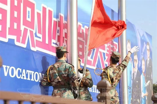 开幕式伊始🙏,进行升国旗仪式。随着响亮的国歌声在现场奏响⚓️🌾,所有师生面向国旗,集体行注目礼🌧。高亢有力的节奏之音,点燃了宿航第二届职业技能大赛启动仪式前的沸腾热血。