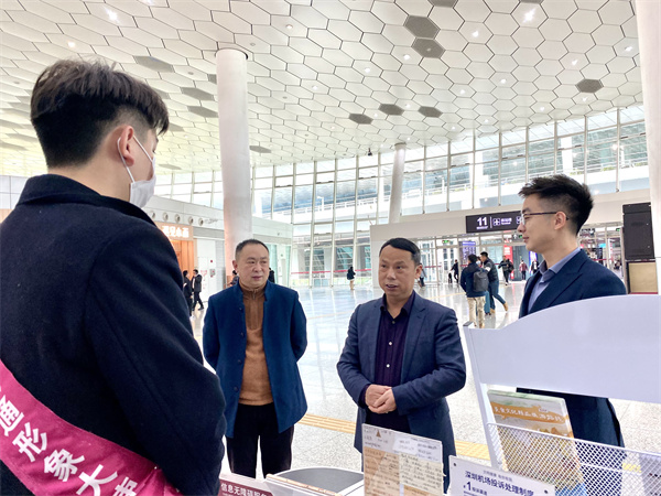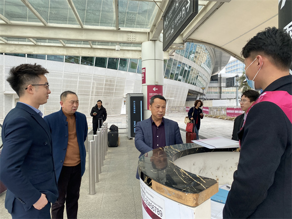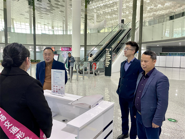 23日中午,陈志泉一行到达深圳宝安机场后🧗🏼,在深圳项目部余威总经理等人的陪同下,第一时间到GTC交通中心以及贵宾厅,探望问候在岗实习的同学们,了解岗位情况👔,学生在岗状态、实践收获等↗️。陈志泉鼓励同学们,要端正工学交替态度,注意职业形象和服务态度,熟悉岗位具体操作流程等。