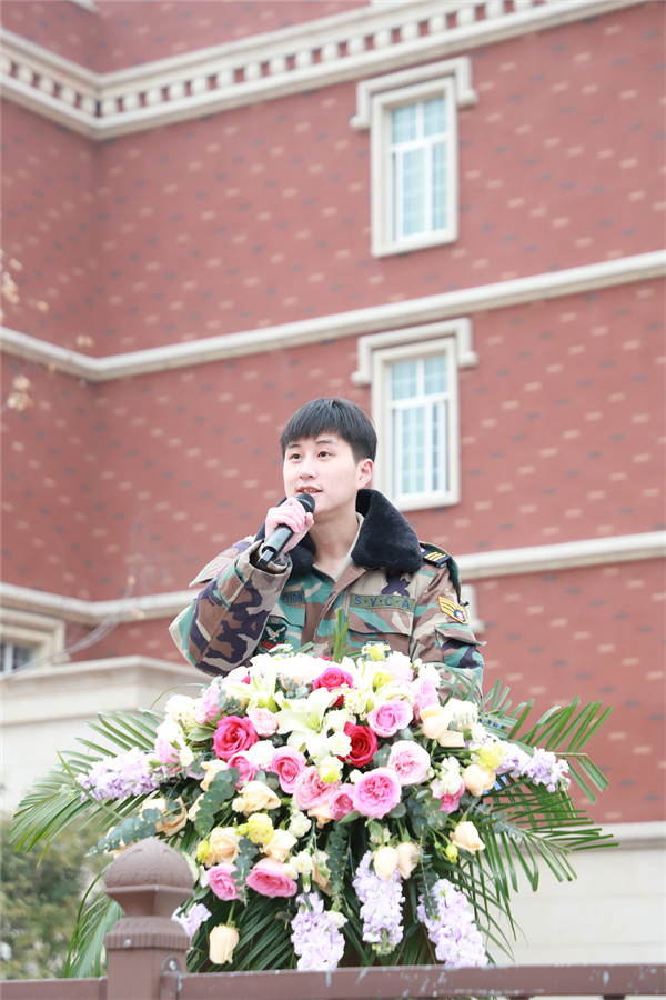 22级空乘1班的牛子聪同学作为通过春秋航空面试、4月1日即将送训的学生代表发言⚰️🟦。他对学院在招聘和面试中的帮助表示感谢🙉,并从自身经历出发和学弟学妹们分享了自己的面试经验:勇于尝试🦇,积极报名各大校招,不要畏惧胆怯;认真准备👂🏿,针对自己的不足之处加以改进;自信展现🧑🏽🏭,面试时要举止大方、面带微笑,注意细微之处的礼仪礼节。