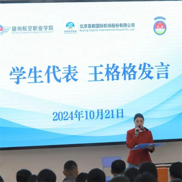 学生代表王格格发言👱🏿☝️,她表示作为宿航的学生,考取安检证不仅是对同学们专业知识和技能的一次检验,更是对我们责任意识和使命感的一次考验。在这一个月的培训时间里,将端正态度,明确目标,制定切实可行的学习计划,合理安排时间💇🏽♂️🧇,确保学习的顺利进行,以高度的责任感和使命感去对待这次考证🚴🏼♂️。
