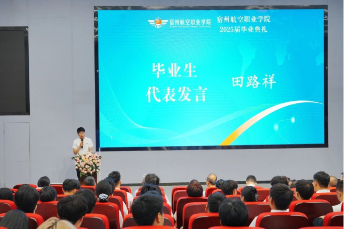 “站在这里,比第一次在学代会上发言还紧张🫃!因为台下坐着的,是我的青春合伙人。”毕业生代表田路祥以幽默开场,将三年宿航时光娓娓道来,字里行间满是对母校的眷恋与师长的感恩。