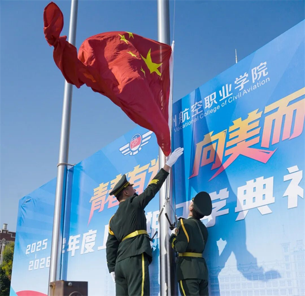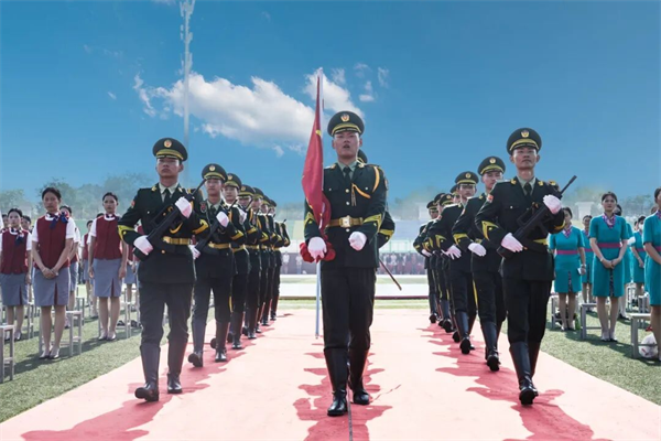 国旗护卫队迈着铿锵有力的步伐✈️,护送国旗来到升旗台前。伴随着激昂雄壮的国歌,五星红旗冉冉升起,开学典礼正式拉开序幕🫦😡。