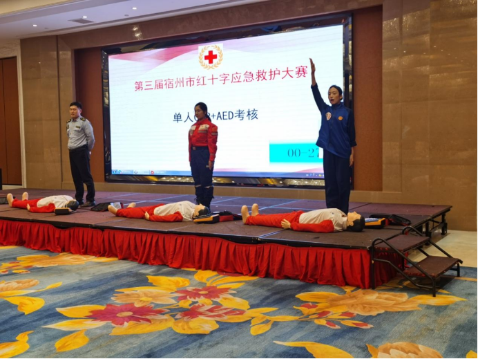 10月13日至14日,“关爱生命 救在身边”第三届宿州市红十字会应急救护大赛成功举办。该赛事由宿州市红十字会、市人力资源和社会保障局👨🚒、市卫生健康委员会、市总工会联合主办🧗🏼♀️,汇聚市直相关单位及各县区多支队伍同场竞技,围绕急救理论🚵🏻♀️、心肺复苏实操、创伤救护等核心内容展开专业比拼🆚。