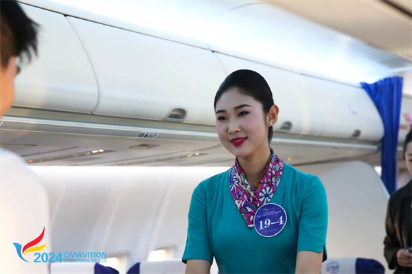 甜美的微笑👨🏻‍🎤、昂扬的青春感🔩,十足的感染力......开幕式现场🧽,一身标准职业装的泛美学子靓丽登场,进行了安全演示、模拟舱🤾🏻‍♀️、应急设备使用、机上救护等实操项目演示,职业范十足。