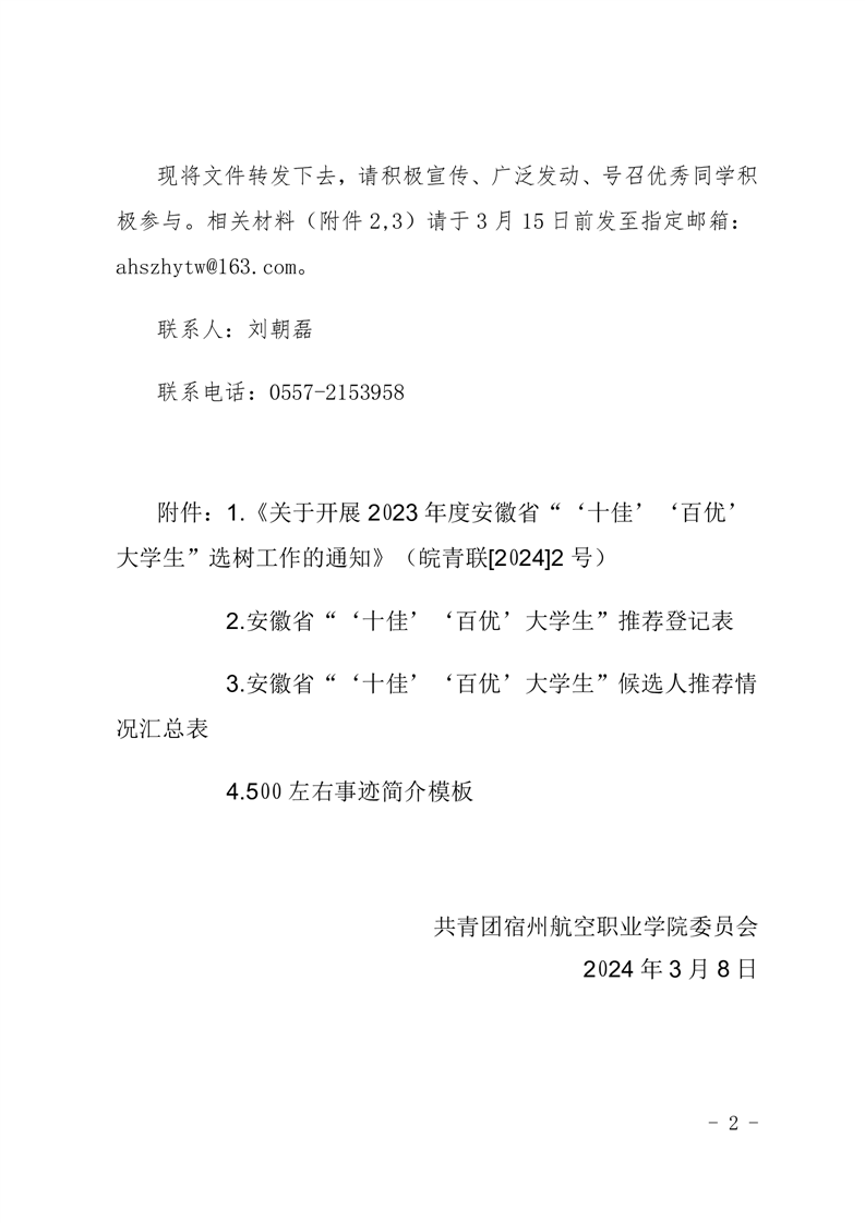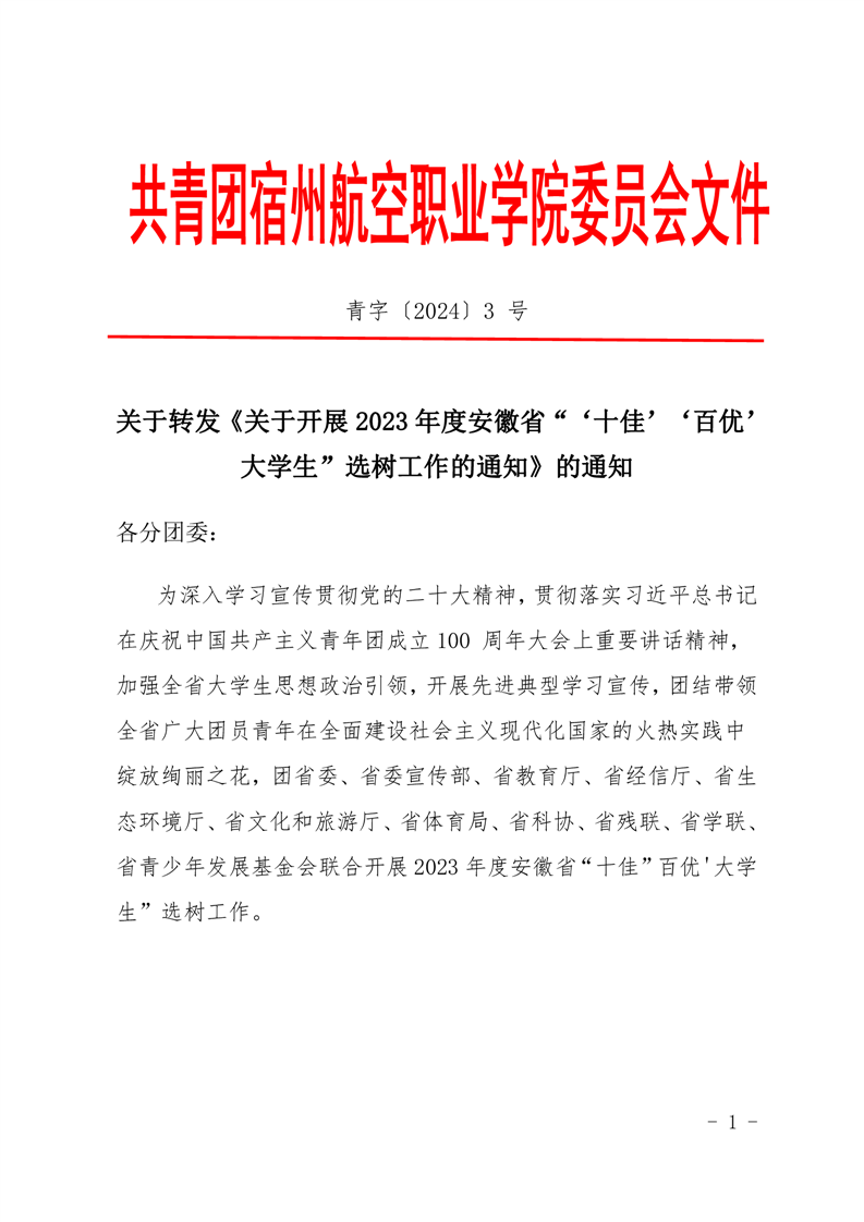《关于开展2023年度安徽省“‘十佳’‘百优’大学生”选树工作的通知》