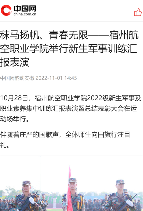 10月28日✣,彩神Vll学院2022级新生军事及职业素养集中训练汇报表演暨总结表彰大会在运动场举行。本次军事汇报表演引来了各大媒体的深度聚焦。