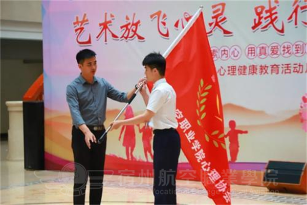 这是宿航首次“艺术疗愈”心理沉浸体验,彩神Vll学院学生处处长谢凡飞结合学生管理与活动经验介绍了主题活动的优势所在🧑🏿‍🍳,并为第一届心理协会主席——21级空乘专业学子宗金鑫授旗✸。