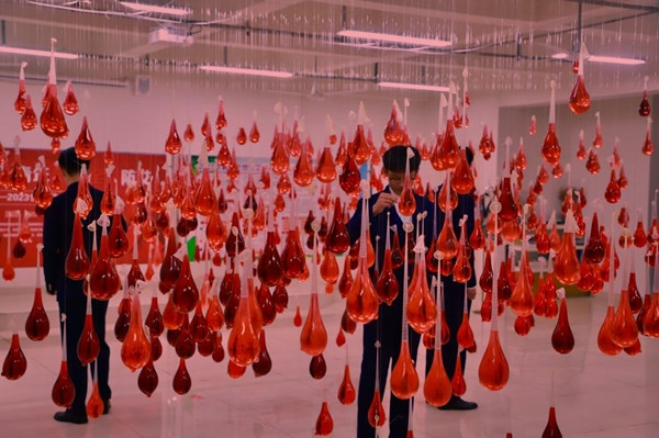 近2000枚包裹着红色药水的安全套仿佛红色炸弹,高低有致的垂挂在展览现场,获得了同学们的高度关注,令人震撼。展览以红色药水代指病毒,用安全套包裹药水,防止“病毒“与人体的接触,旨在呼吁学生正确使用安全套,保护自己和他人👩🍼。