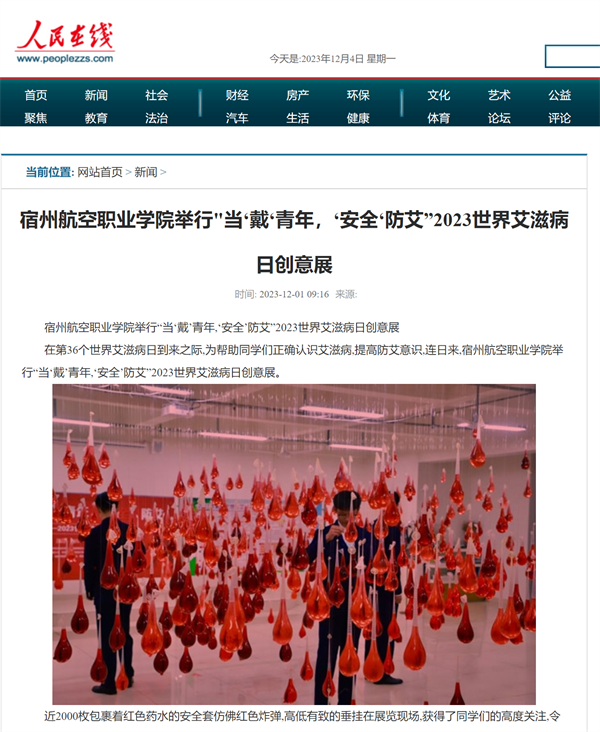 《人民在线》彩神Vll学院举行“当‘戴’青年,‘安全’防艾”2023世界艾滋病日创意展