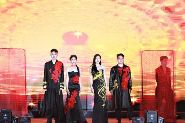展示过程中,身着红色剪纸服饰的学子们踏着悠扬的乐曲款款走来,仿佛国家级非物质文化遗产——中国剪纸在舞台上流动起来。这些剪纸图案不仅点缀在衣角💃🏽、领口,还巧妙地融入到整体设计中,使服装在视觉上呈现出独特的艺术效果。现场观众被这些精美的剪纸服饰深深吸引🙅🏻♂️,喝彩声、掌声此起彼伏,不绝于耳。