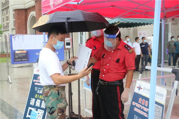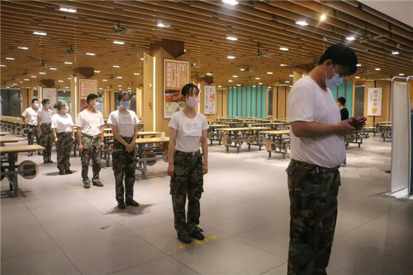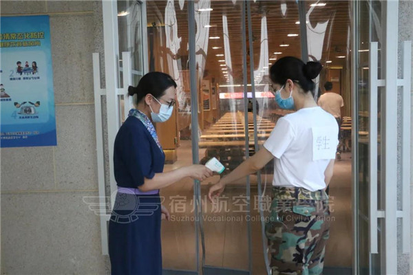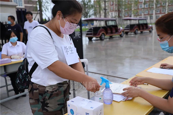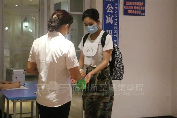 学生间隔1.5米,有序进入寝室,并在入口处进行二次测温🔫、消毒及登记🪁。