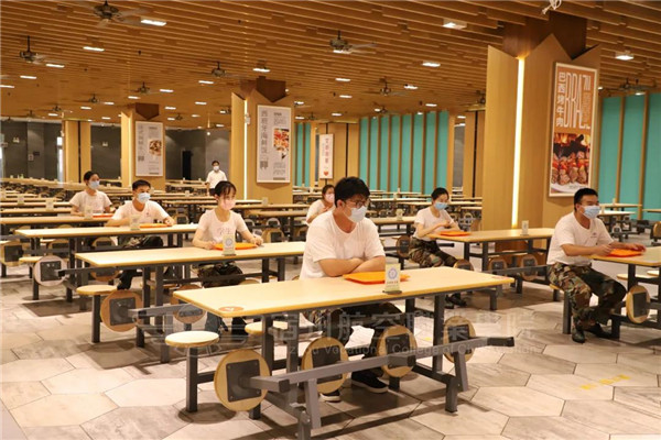 学生就餐时,在窗口处保持间距1.5米,有序排队打饭。严禁面对面就餐和扎堆就餐🗝,就餐中不交流、不说话🫦,避免交叉感染。