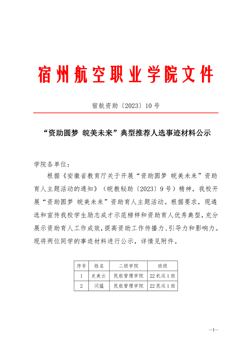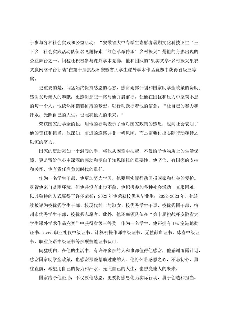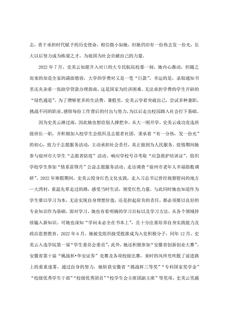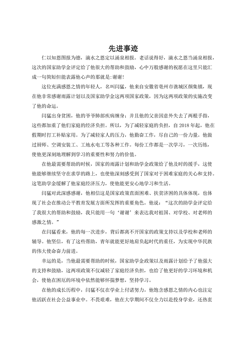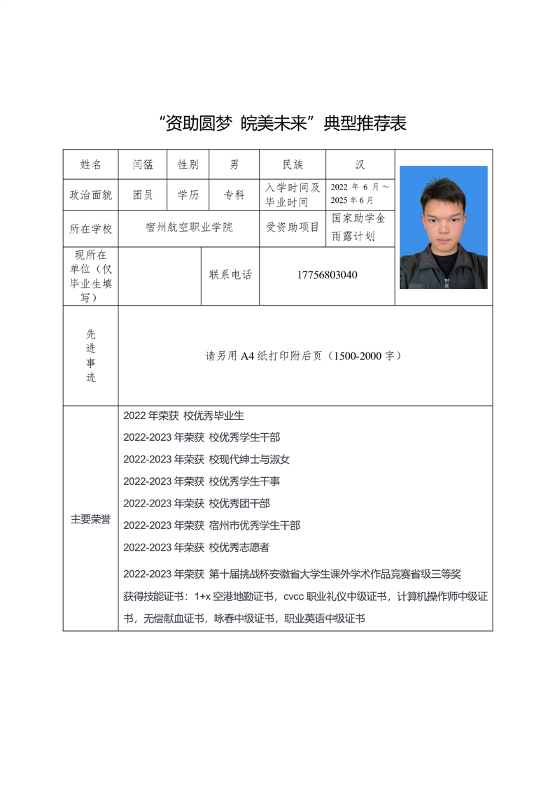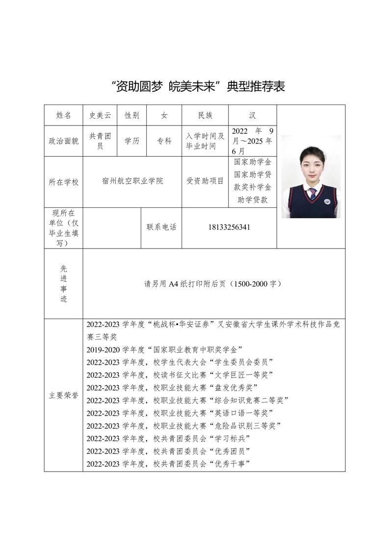 彩神Vll学院“资助圆梦 皖美未来”典型推荐人选事迹材料公示