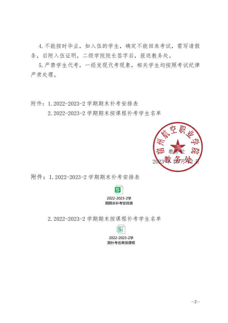 关于做好 2022-2023 学年第二学期补考工作的通知