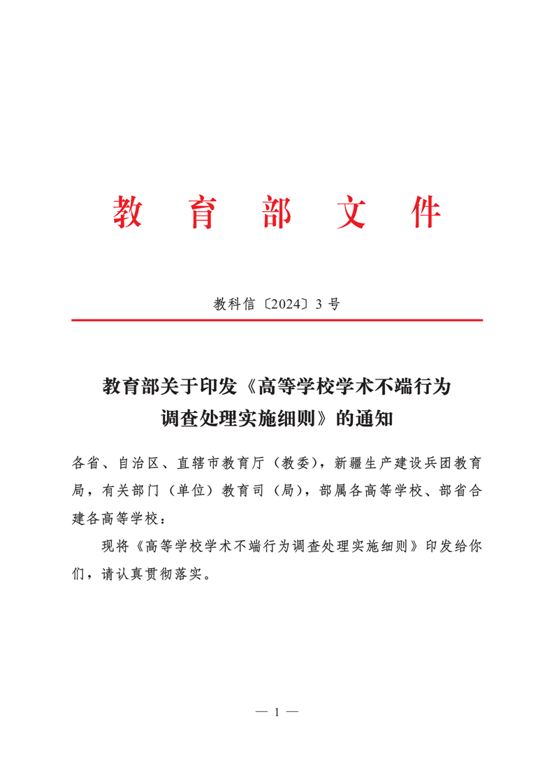 教育部关于印发 《高等学校学术不端行为调查处理实施细则》的通知