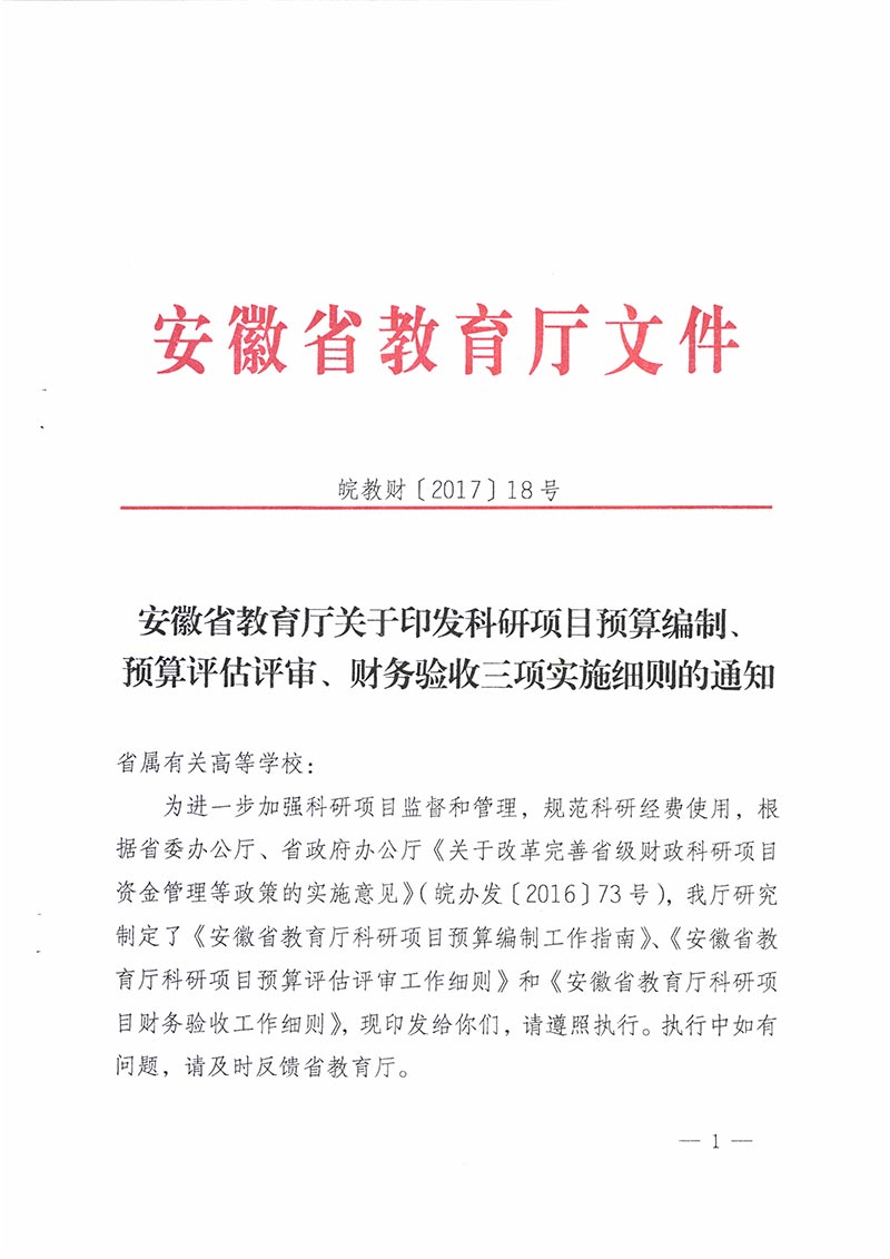 安徽省教育厅关于印发科研项目预算编制、预算评估评审🧺、财务验收三项实施细则的通知