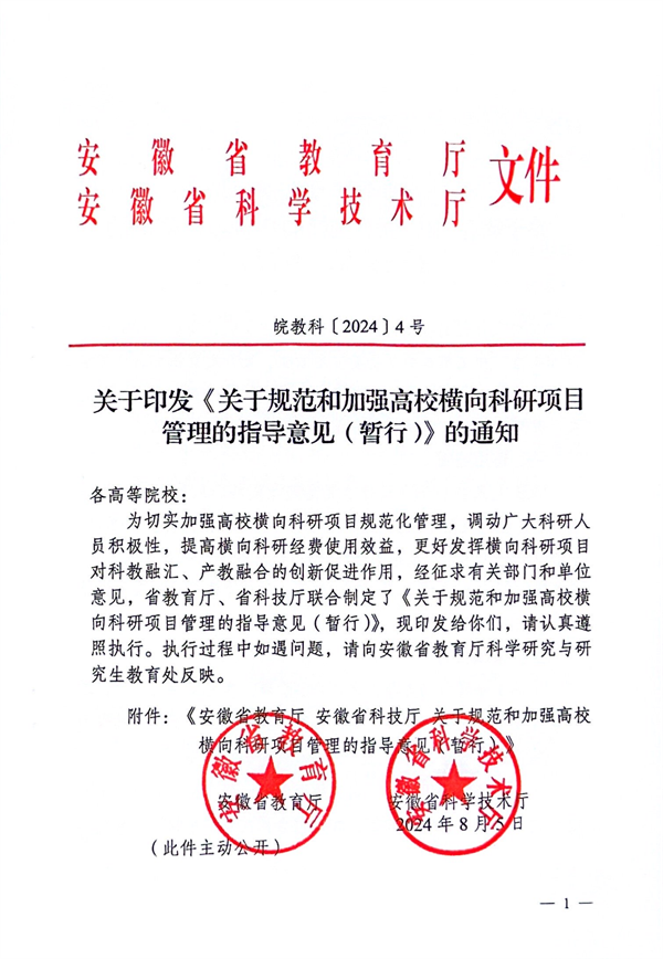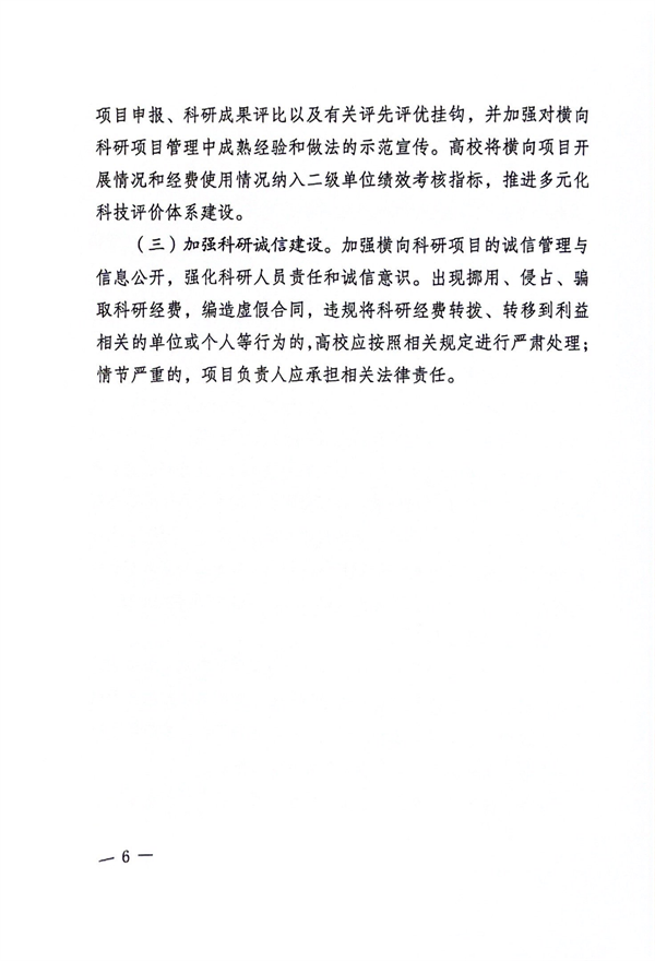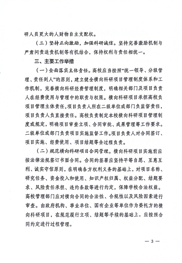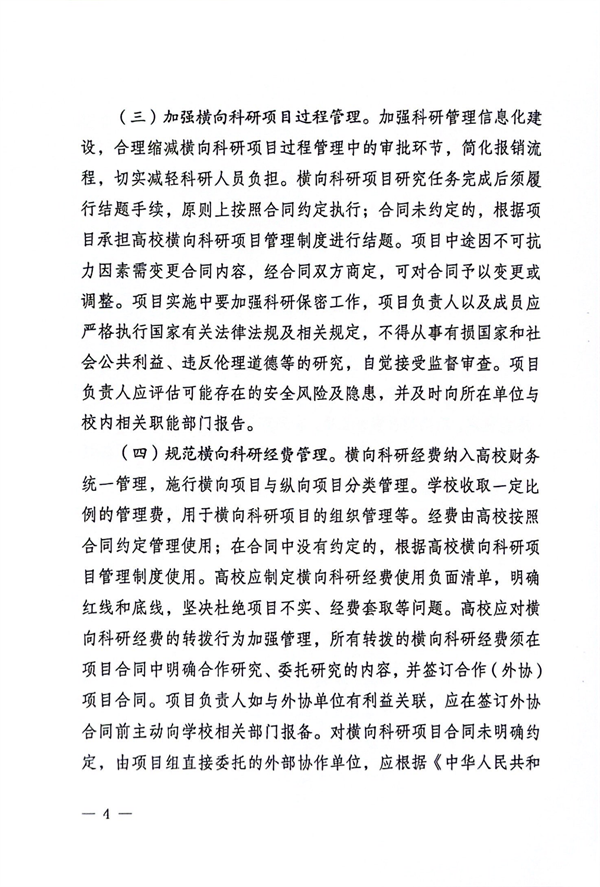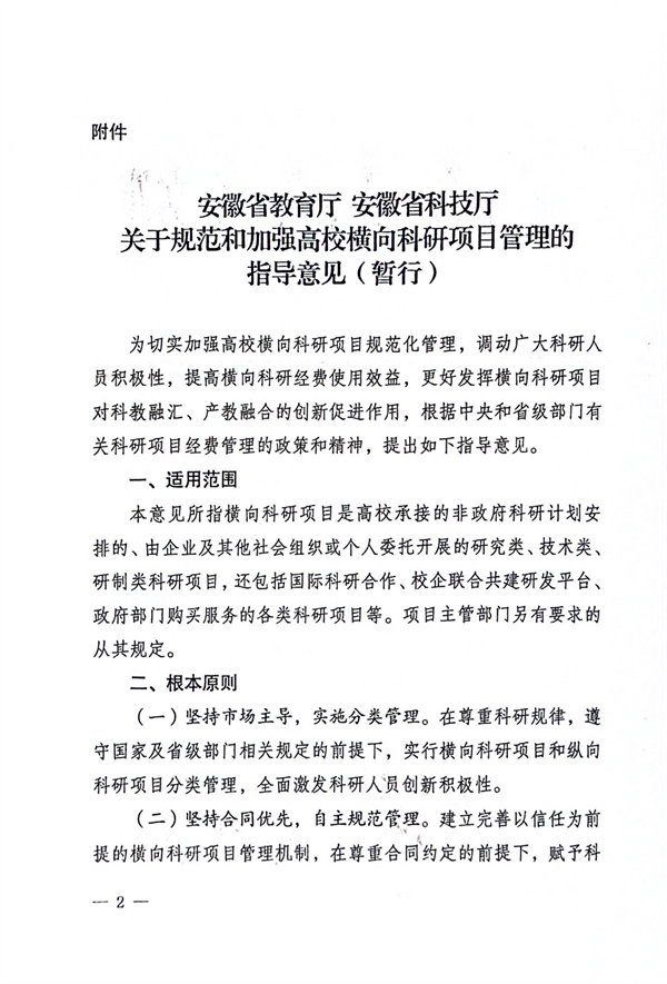 关于印发 《关于规范和加强高校横向科研项目管理的指导意见 ( 暂 行 )》的通知