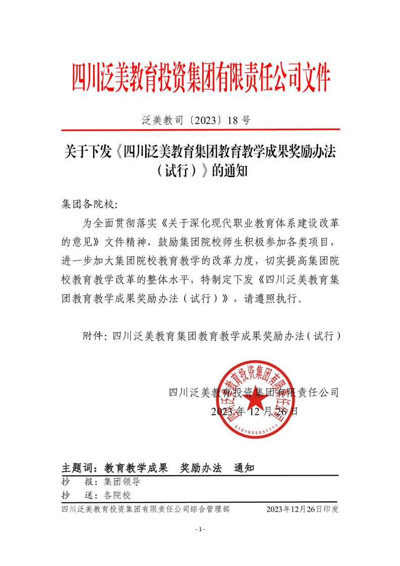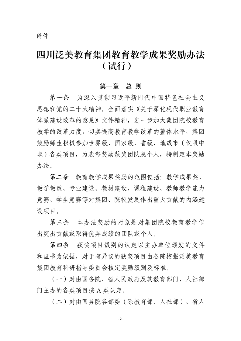 四川泛美教育集团教育教学成果奖励办法(试行)
