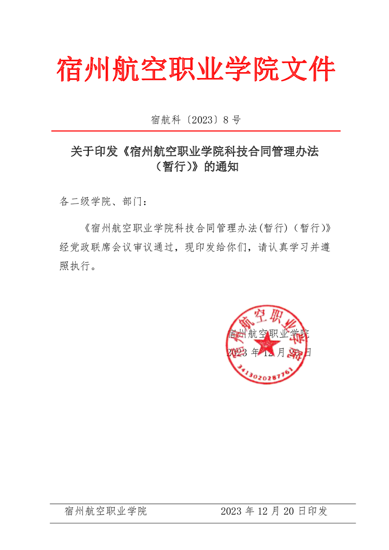 关于印发《彩神Vll学院科技合同管理办法(暂行)》的通知