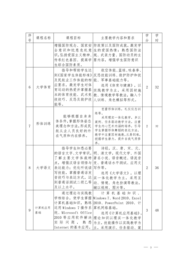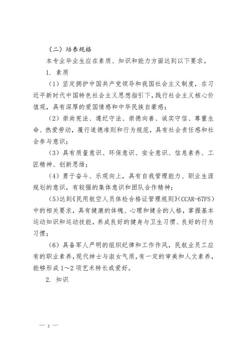 机场运行服务与管理专业2022级人才 培养方案(高考统招)