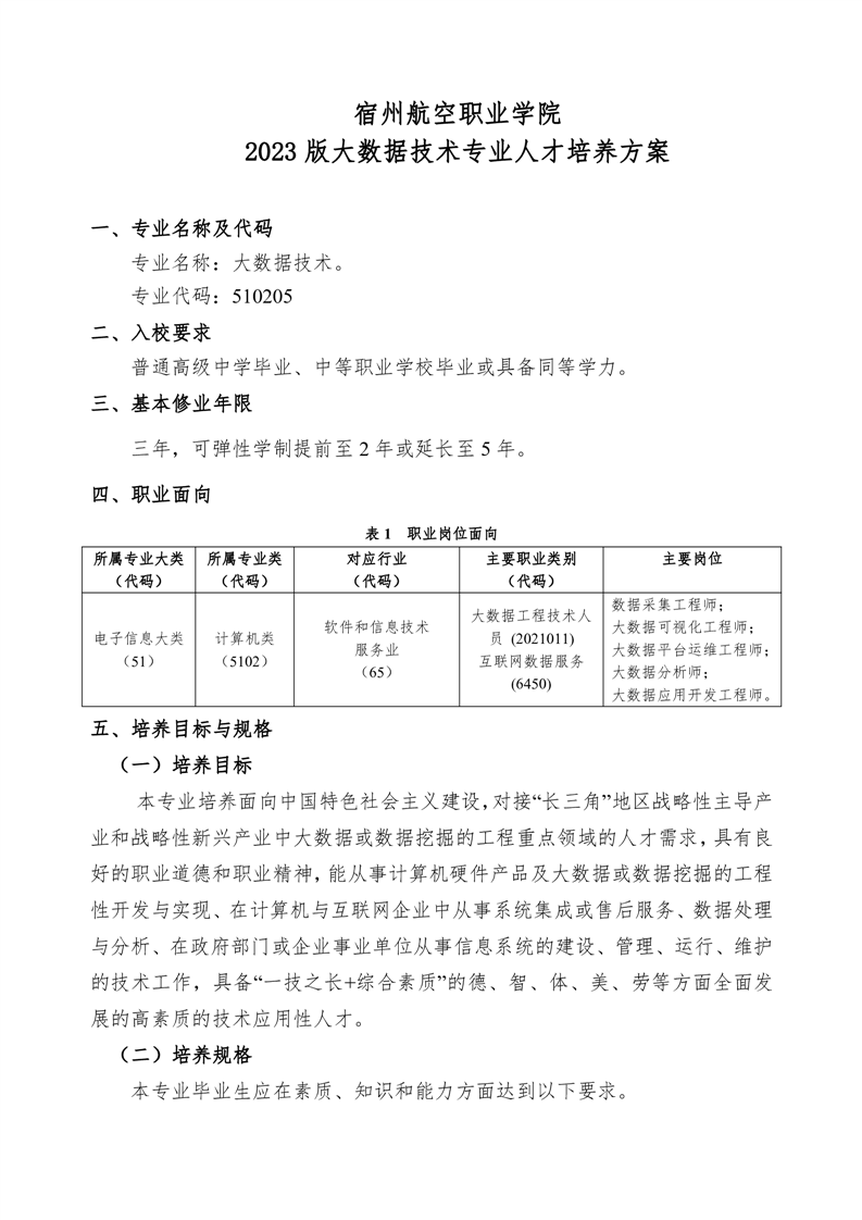 彩神Vll学院 2023 版大数据技术专业人才培养方案