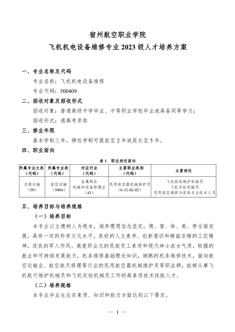 • 彩神Vll学院 飞机机电设备维修专业 2023 级人才培养方案