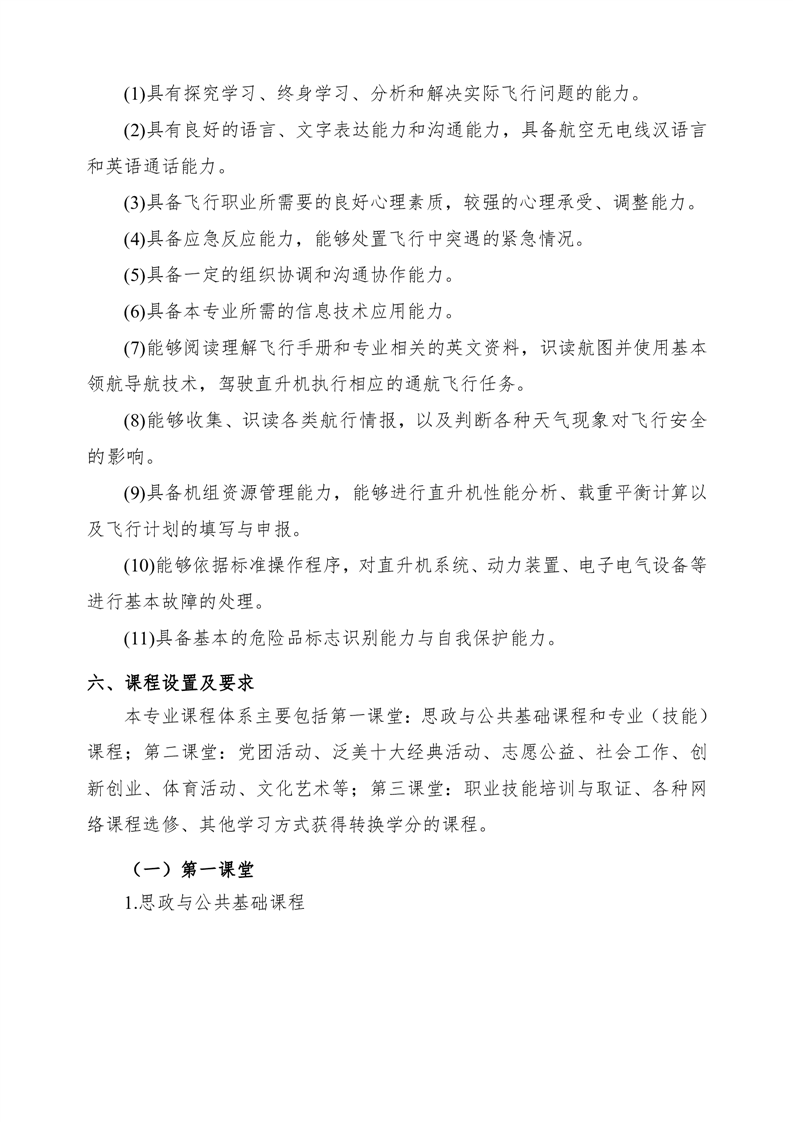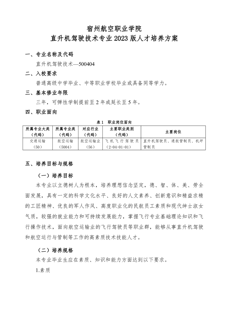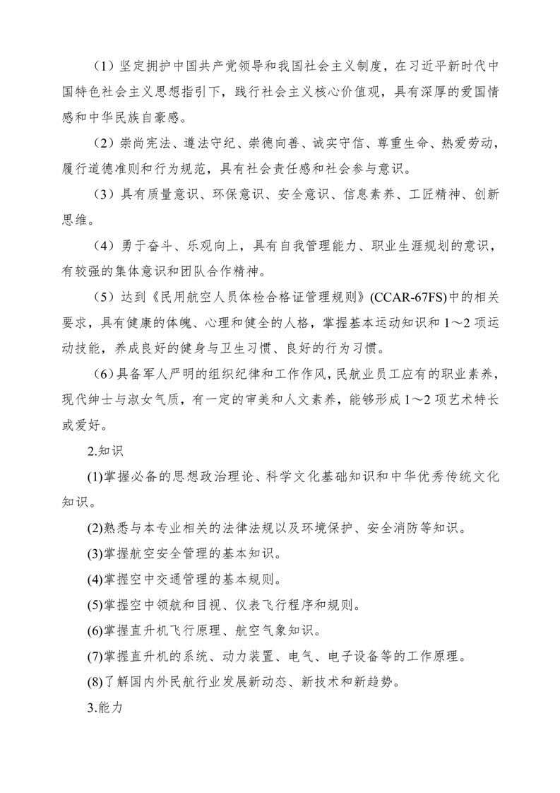 直升机驾驶技术专业2023版人才培养方案