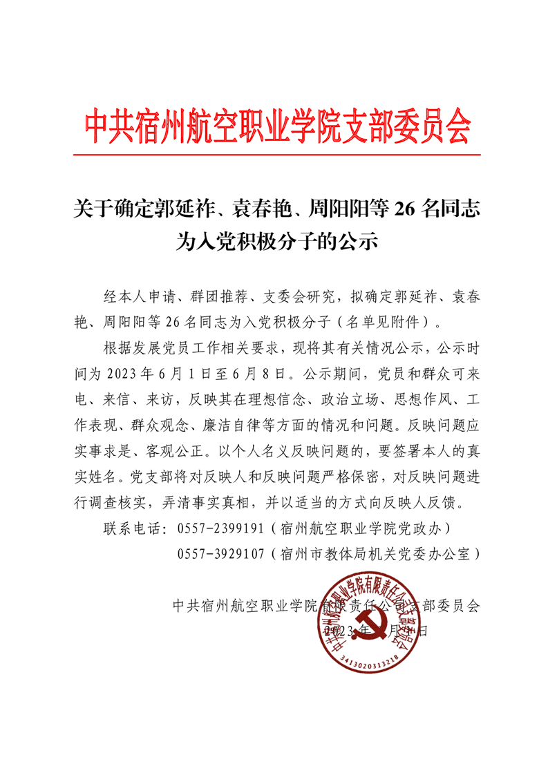 关于确定郭延祚、袁春艳🫸🏻、周阳阳等26名同志为人党积极分子的公示