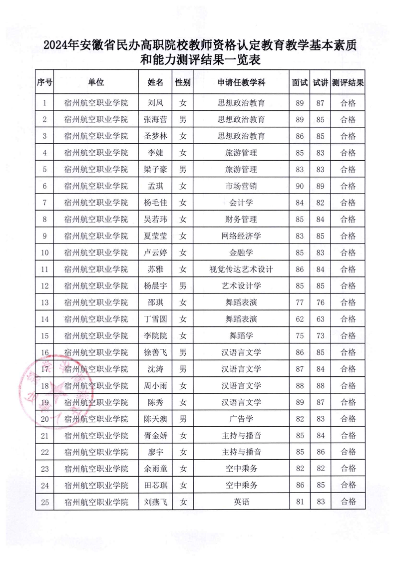 2024年安徽省民办高职院校教师资格认定教育基本素质和能力测评结果公示