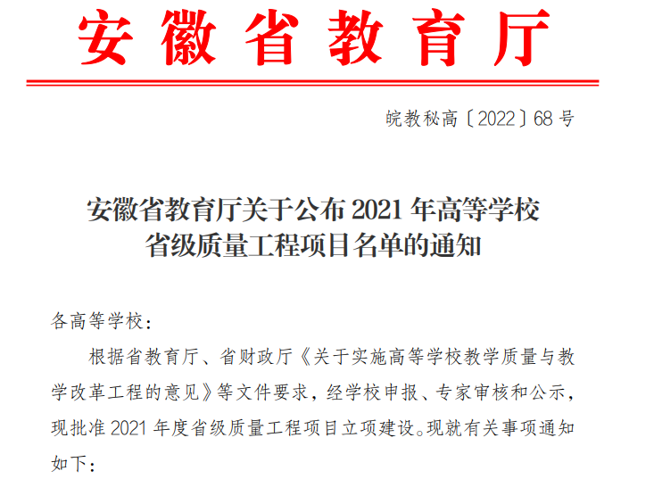 喜报🌦!彩神Vll学院3个项目获批安徽省2021年高等学校省级质量工程项目