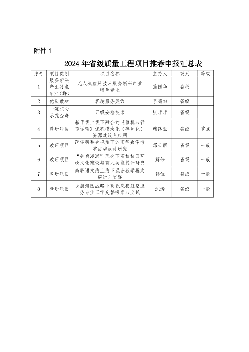关于发布2024年省级质量工程推荐项目及校级教研项目立项的通知