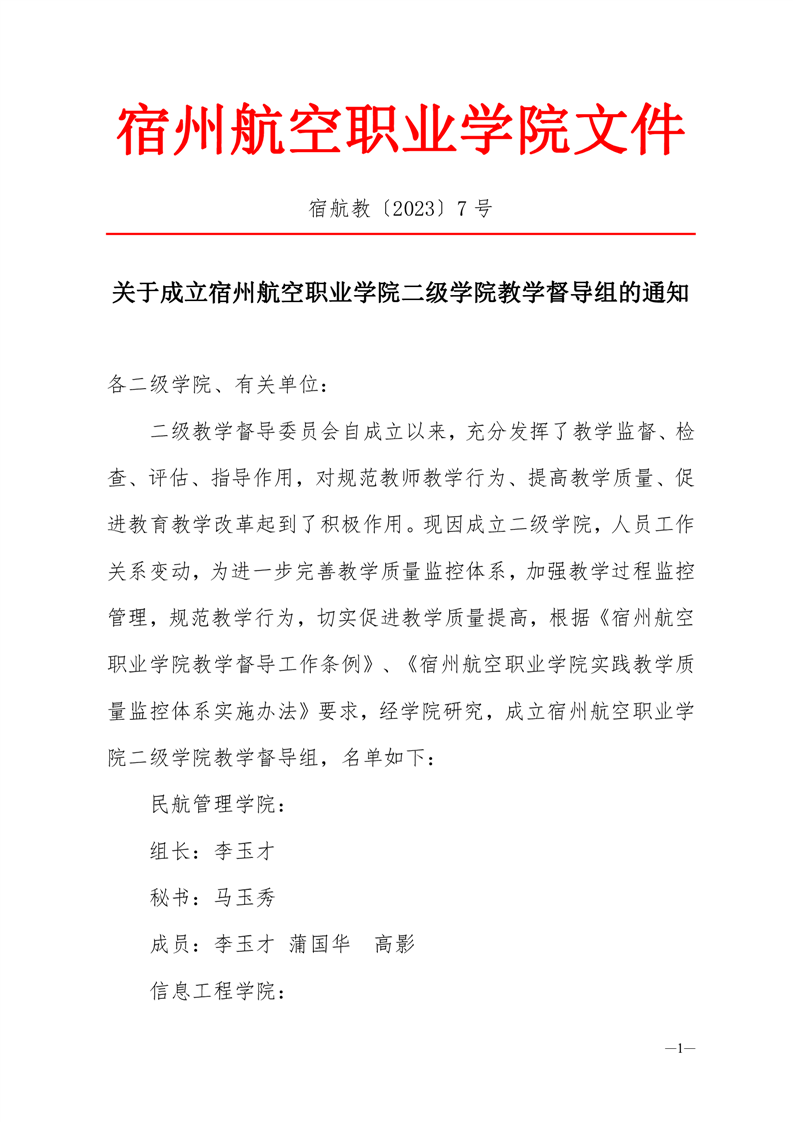 关于成立彩神Vll学院二级学院教学督导组的通知