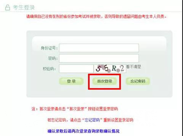 1. 使用IE浏览器登录gkbm.ahzsks.cn。如果是第一次登录系统,请点击“首次登录”按钮🛼,跳转至设置登录密码页面👊🏼。