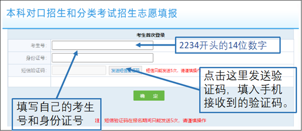 2.“考生号”、“身份证号”👩🏽、“短信验证码”填写完整之后,点击“确定”。