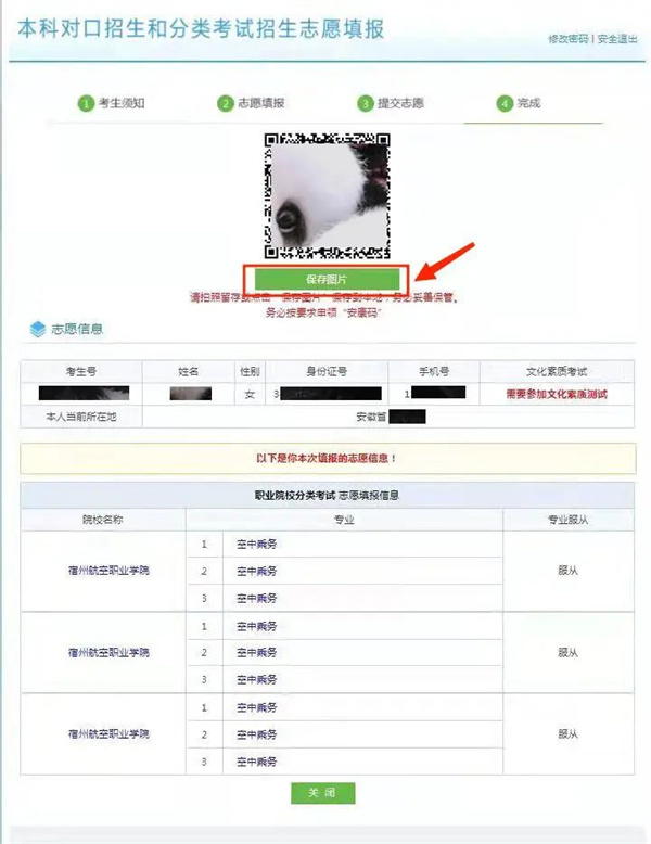 10.二维码包含加密的个人信息和志愿信息⛽️,点击“保存图片”将二维码保存到本地电脑。