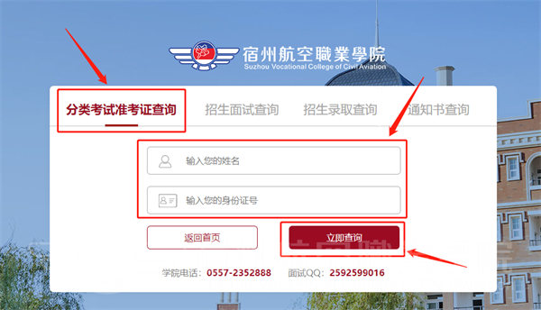 2.进入后点击“分类考试准考证查询”🏃♂️,根据提示填写学生姓名及身份证号码⛏,填写正确后,点击下方“立即查询”,即可查看准考证☀️📣;