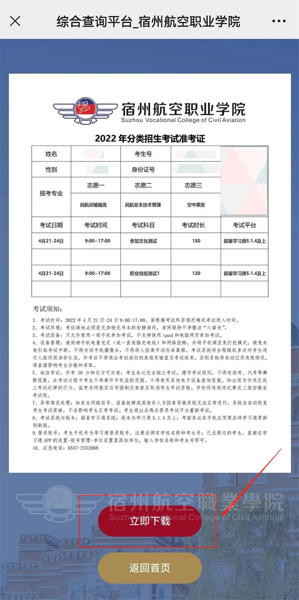 3.登录后🏬,请考生仔细核对个人信息,核对无误后,点击下方“立即下载”,下载完成后,即可保存图片,打印准考证了。