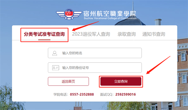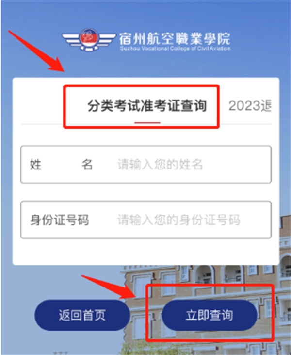 2.进入后点击“分类考试准考证查询”,根据提示填写“姓名”及“身份证号码”🤶🏿,填写正确后,点击下方“立即查询”🧑🎤,即可查看准考证🤐;
