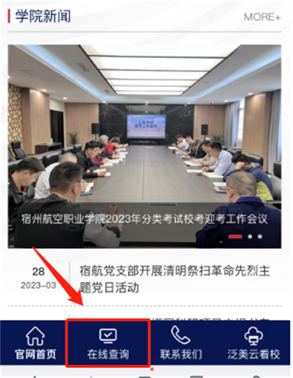 1.登录彩神Vll学院官网http://www.szhkxy.com/,点击首页最下端“在线查询”进入查询✌🏼;